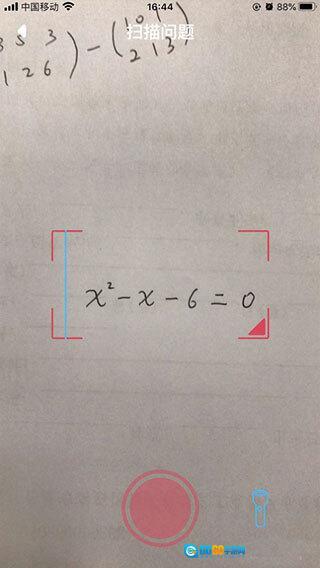 3、开启手机摄像头,把题目放到屏幕提示的区域里,接着点击下方的红色按钮;