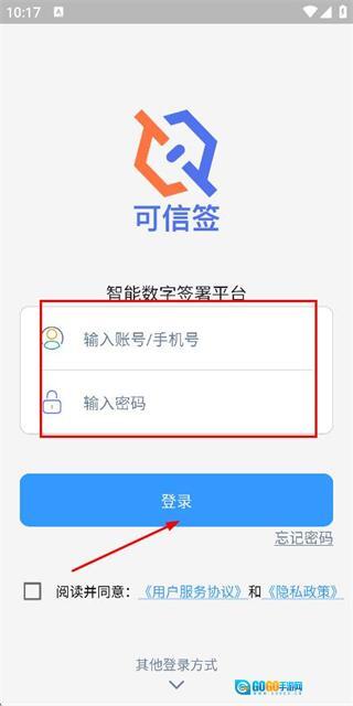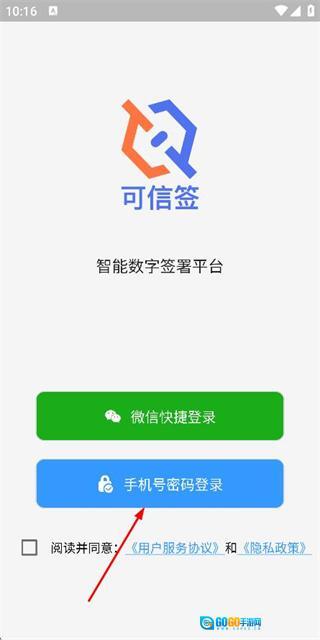 3、进入手机端登录界面后,依次填写手机号与密码,勾选相关协议,最后点击登录按钮,即可完成账号登录流程。