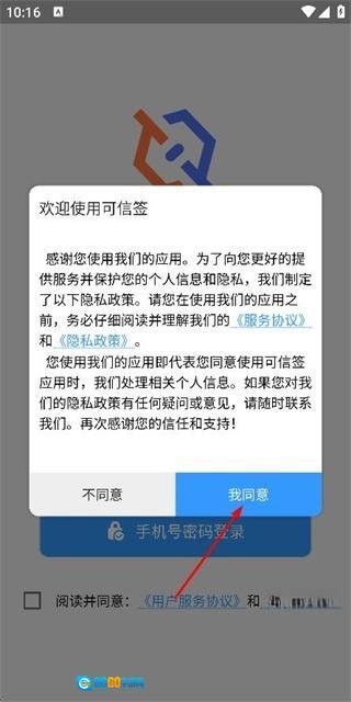 在使用协议和隐私政策的弹窗里点击“我同意”按钮,即可进入登录选择页面。