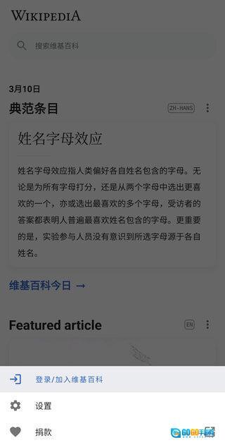 1、维基百科手机版,安装后打开,点击搜索;