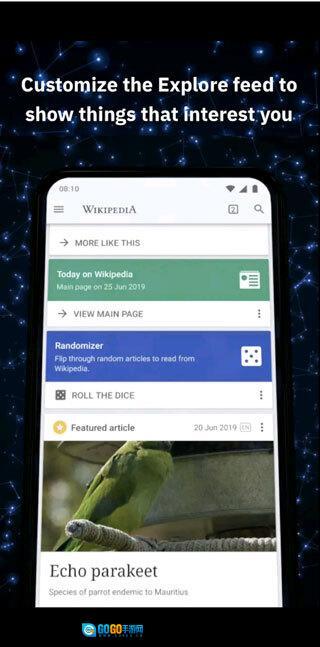 你可以把喜欢的文章保存下来,借助“我的列表”在没有网络时阅读维基百科内容。还能按照自己的需求给列表命名,并且可以收集不同语言版本的文章。保存好的文章和阅读的列表会在你所有的设备之间同步,就算没有互联网连接也能正常使用。
