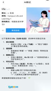 2、依托详尽的AI辅助记忆功能,通过拆分联想、谐音联想、图像联想等多元方式,助力用户高效且科学地记忆单词。