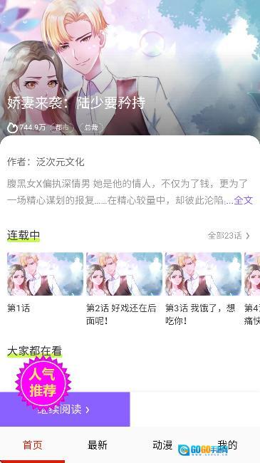 1、并安装应用后,直接进入主界面,立即开启您的漫画探索之旅,操作简便。这里有大量的人气推荐作品可以去阅读