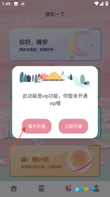 界面中央的弹窗明确提示该功能需开通VIP方可使用,两个操作按钮为用户提供了充分的选择空间,下方还陈列着其他可使用的功能,像实用的倒计时工具就包含其中。