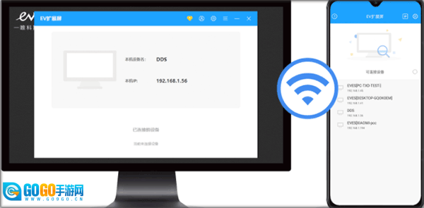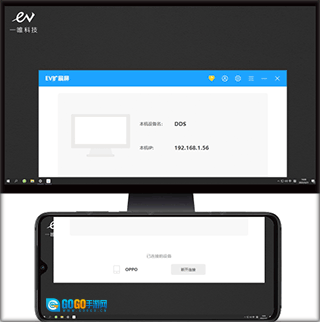 1、在本站完成安装后点击打开进入,手机和电脑分别启动EV扩展屏应用,且手机与电脑需要处于同一网络环境下。