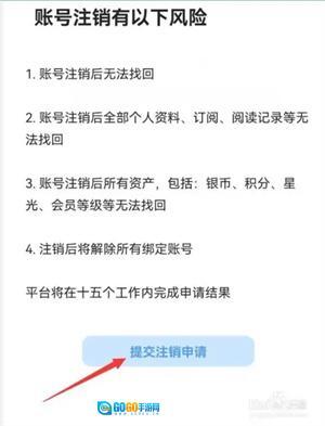 进入页面后,在阅读相关风险后,点击“提交注销申请”后即可等待系统注销,如图所示。