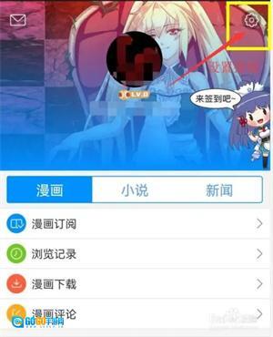 在漫画之家正版“我的”页面中,点击右上角“设置按钮”(齿轮图标)进入,如图箭头所示位置。