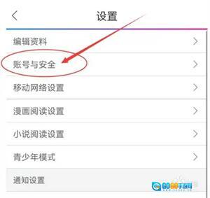 在设置页面中,点击“账号与安全”进入。