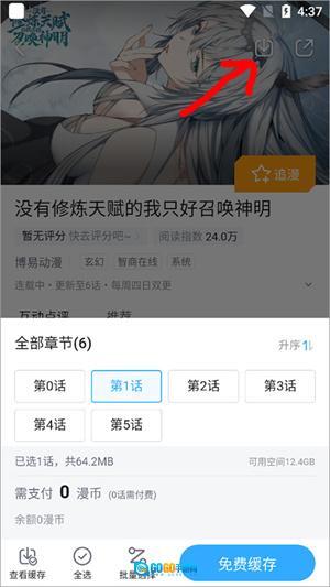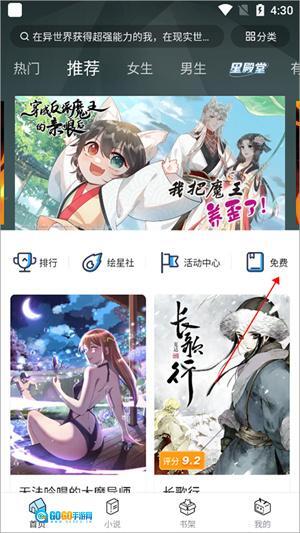 除了部分正版漫画因版权问题只能在线浏览,不提供缓存外,其作免费漫画可以进行缓存,用户可以进入应用首页中点击【免费】;