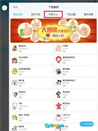 3、下一步,进入个性装扮,可以看到顶部的【字体大小】,点击【字体大小】打开