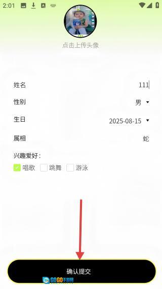 2、填写宝贝姓名、性别等信息后,点击【确认提交】。
