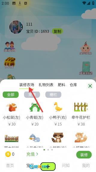 4、在商城中选择【装修农场】分类,查看装饰物品。