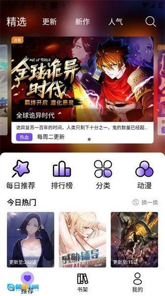 2、提供夜间与护眼模式,打造纯净的阅读空间,并会实时推荐热门漫画。