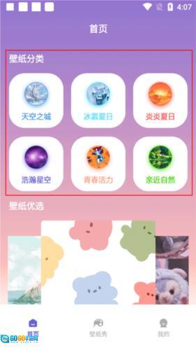 1、打开软件后在首页选择自己喜欢的壁纸类型