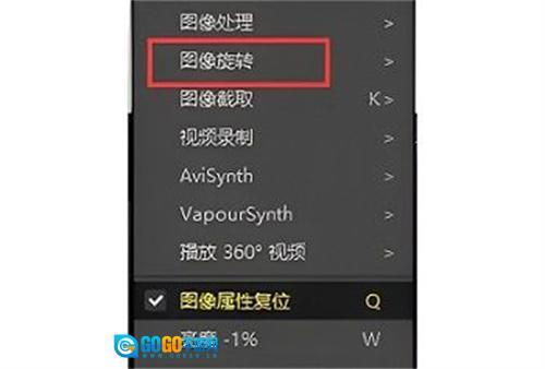 在【视频】子菜单内,选择【图像旋转】功能,该选项下会进一步显示旋转角度的具体设置项。
