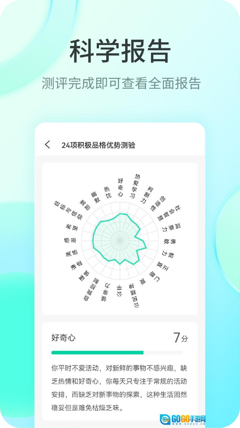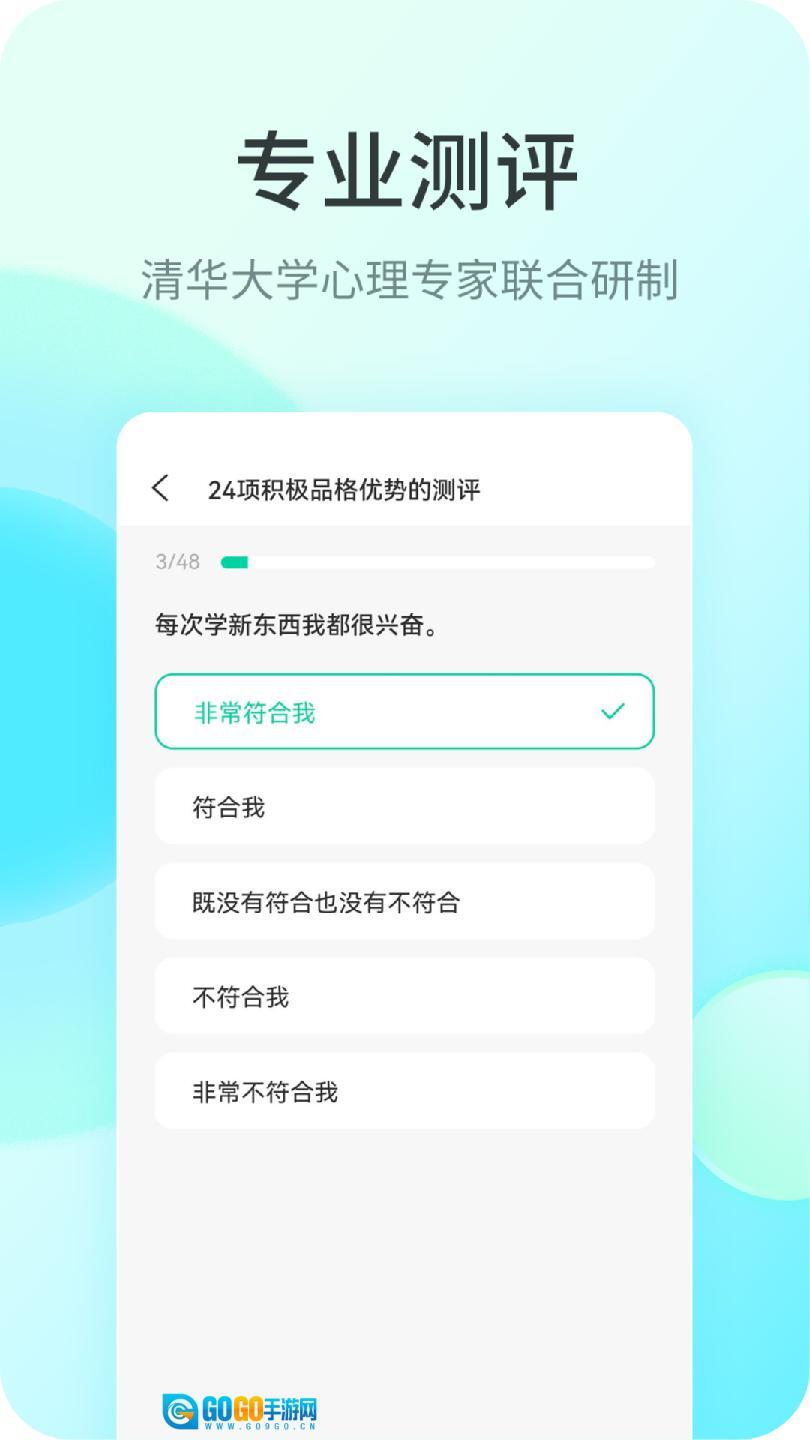 1、测评体系专业完善:由心理专家团队研制超百套测评题,覆盖情绪、性格等多维度积极心理指标,适配不同年龄与身份的测评需求。