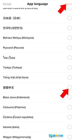 4、在新打开的语言选择界面,将语言设置为繁体中文,最后点击右上角的“Done”按钮即可。