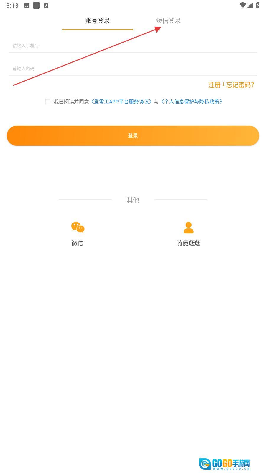 2、跳出登录界面,点击上方右侧的【短信登录】。
