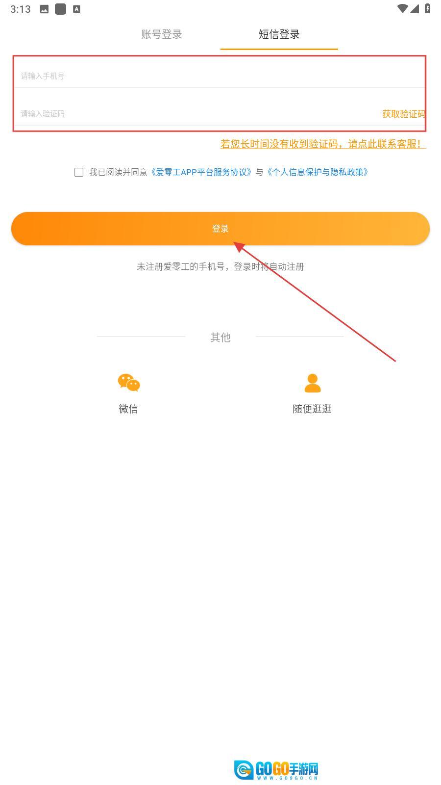3、在方框中输入手机号,点击【获取验证码】将验证码填入,最后按下【登录】即可完成注册操作。