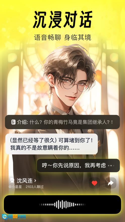 2.深度对话:利用语音或文字与AI角色进行深入对话,了解他们的个性和背景故事,编织专属的故事情节。