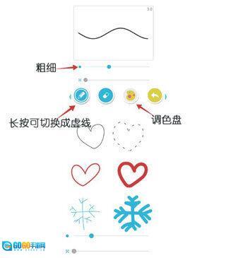 1. 借助滑动操作来调控线条粗细,往左滑动线条变细,往右滑动线条则变粗。
