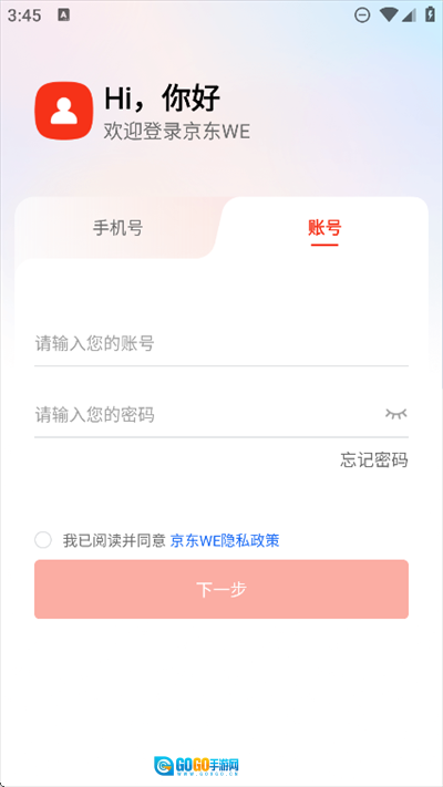 1、打开进入京东WE软件,点击同意隐私协议
