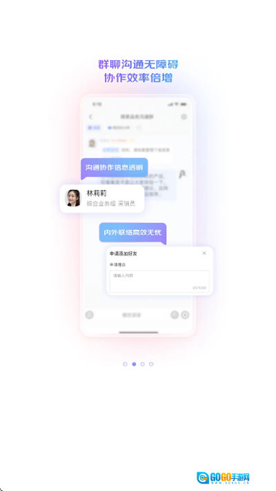 通讯录:用户可在通讯录里查找工作相关的联系人,便于和这些工作联系人开展办公沟通。