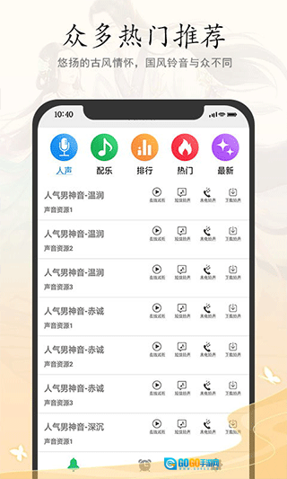 6、这里汇聚了众多热门古风歌曲,国风铃声助你彰显独特品味。