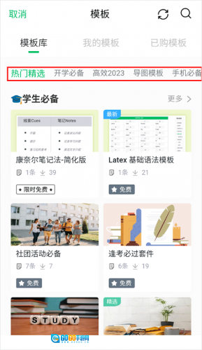 7、此外,软件内也提供了丰富多样的模板可供挑选,涵盖开学必备、手机必备等不同类别;