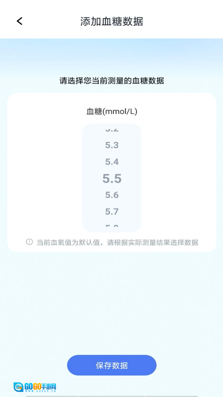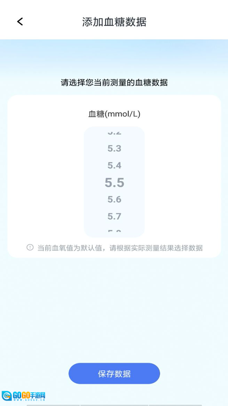 1、添加血糖数据时,系统会提示用户当前血氧值为默认值,需根据实际测量结果选择对应数据。