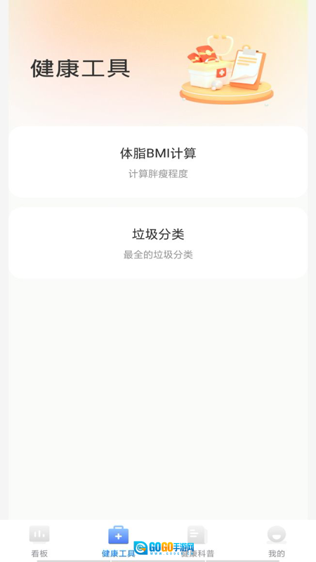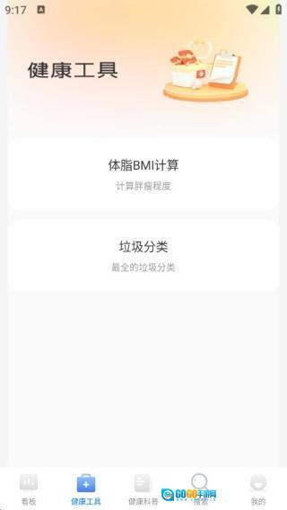 3、还融入了体脂BMI计算、垃圾分类等实用健康工具,进一步丰富了软件的健康服务范畴。