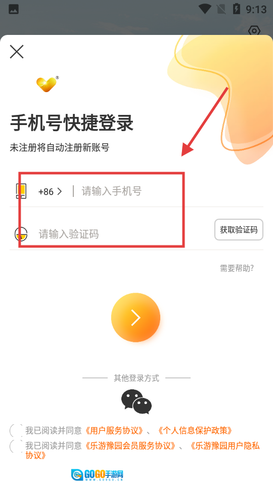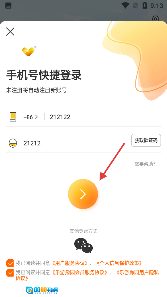 4、勾选同意相关协议后,点击橙色箭头按钮,即可完成登录操作。