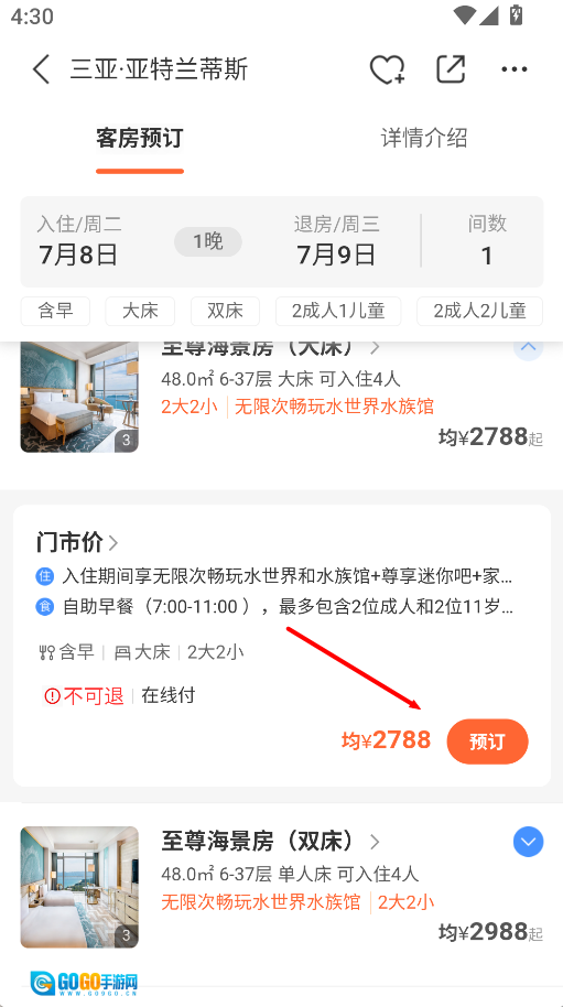 3、在确定好想要的房源后,点击“预订”按钮,就能进入下单流程并完成预订操作。
