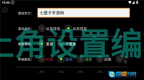 6、在此处设置滚动文字内容、滚动方向、字体样式以及背景颜色等参数