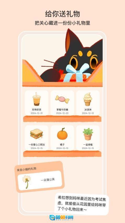 进入后开启和小猫的故事,慢慢推进剧情,带来互动养成的乐趣。