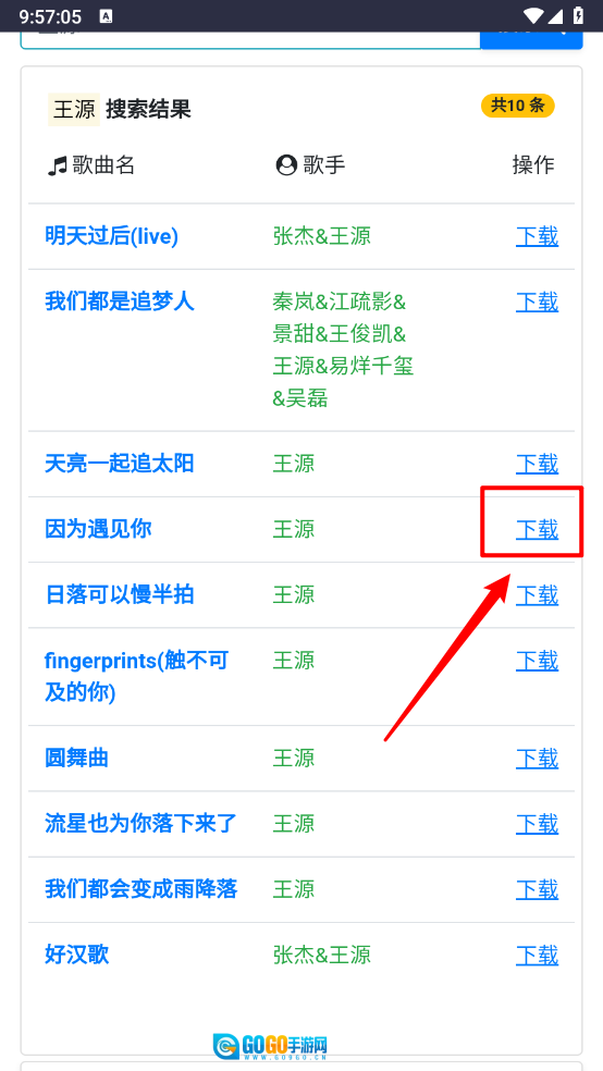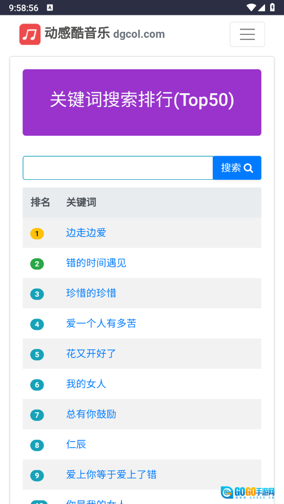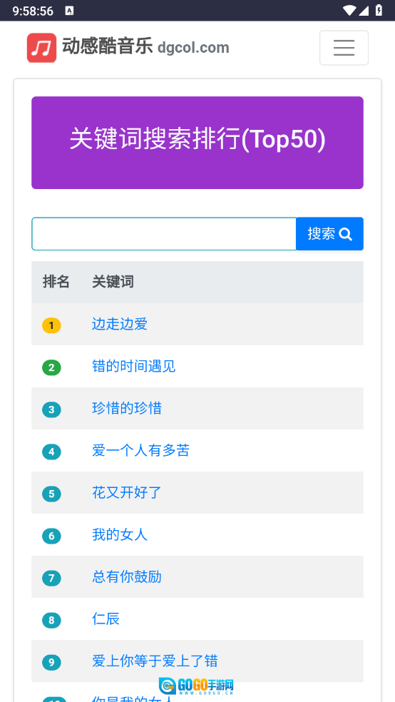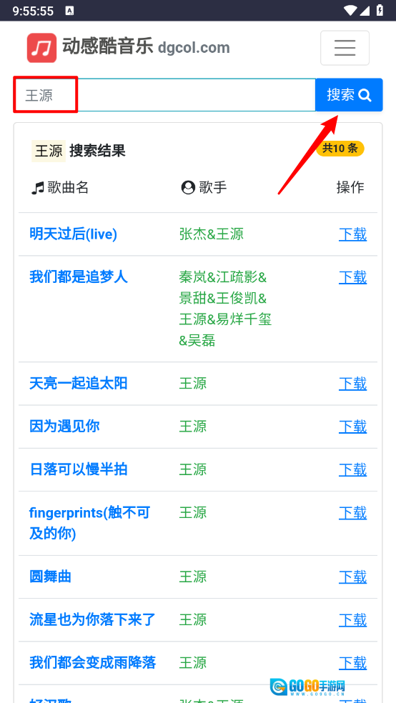3、也能点击顶部的搜索框,输入歌手名字或者歌曲名称来进行搜索,就像图中展示的那样。