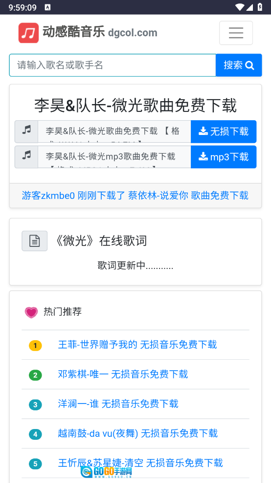 动感酷音乐网,是全网最新且资源最全的无损音乐与mp3歌曲免费平台。在这里,你可以搜索喜爱的歌曲;无需担心找不到音乐资源,而且一键操作极为便捷,平台还提供多种音质选项,让你随时都能开启播放。