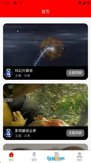 3、进入软件首页后,界面如图所示;这里会向用户推荐大量热门配音模板,大家可以自行挑选感兴趣的模板来制作同款配音。