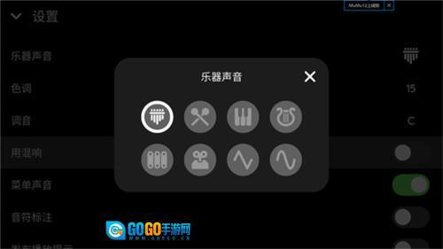 3、点击乐器声音你可以设置你想要弹奏的乐器