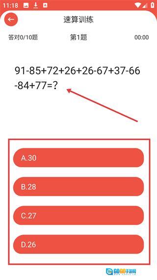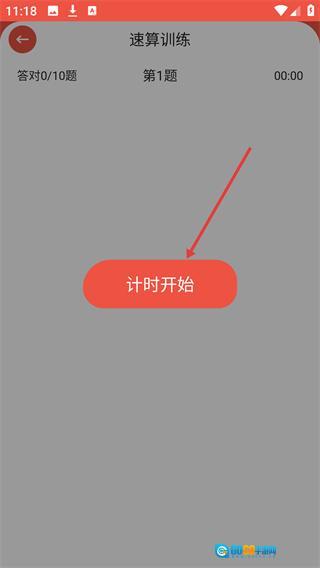3、进入速算训练答题页面后,点击【计时开始】按钮即可启动限时答题流程,在此过程中需要对题目做出快速响应。