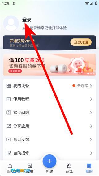 2、进入个人中心页面后,点击登录按钮,即可跳转至验证码登录界面。