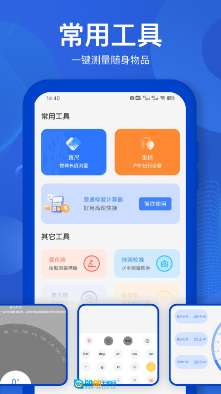 2、辅助工具配备齐全,除 AR 测量功能外,还涵盖了量角器、指南针、分贝仪等实用工具,能够满足用户多样化的测量需求。