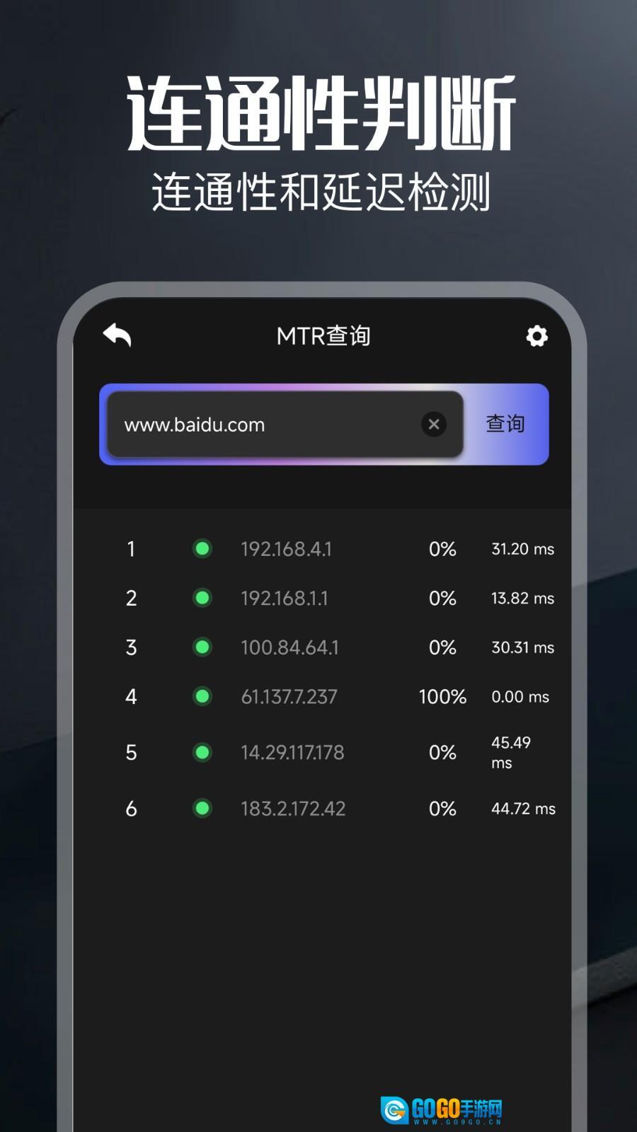 3、拥有网络性能监测功能,能够实时展示当前连接的上传/下载速度、往返延迟以及连接稳定性等相关数据。