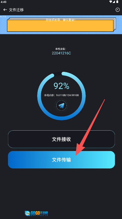3、在操作界面中找到并点击“文件传输”选项,即可正式启动向目标设备的数据传送流程。