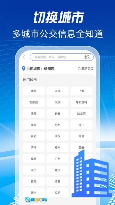 1、完成安装后进入应用,选择你所在的城市,就能开启全面的公交、地铁服务体验。