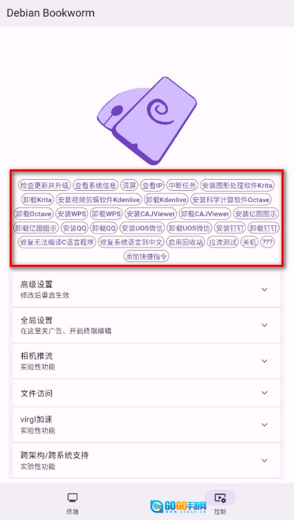 4、提供终端和众多可调节参数供高级用户使用