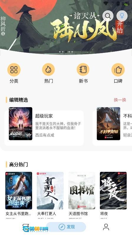 1、在软件的首页,我们既能看到一系列推荐的热门小说,也可以通过顶部的搜索栏查找自己感兴趣的小说。