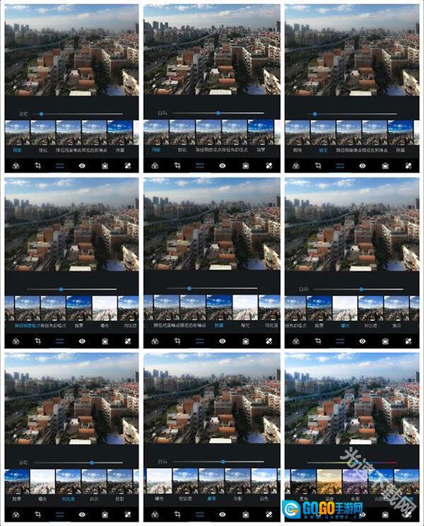 -颜色:滑动控制正确的清晰度,对比度,曝光,高光,阴影,色温,色调,锐化和抖动。