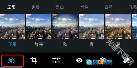 进入工具栏的第三个调整工具中(正常步骤是先对图片旋转裁剪,然后添加滤镜后再做这一步)。