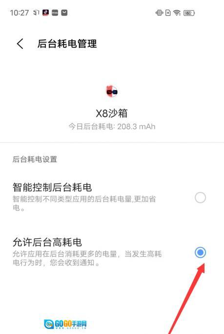 进入应用耗电管理,找到X8沙箱